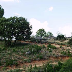 Continuamos de frente por este camino en dirección a Fuertescusa (tramo E5) que pronto aparece tras una curva. Desde Cerrillo Blanco todo es descenso hasta el pueblo.